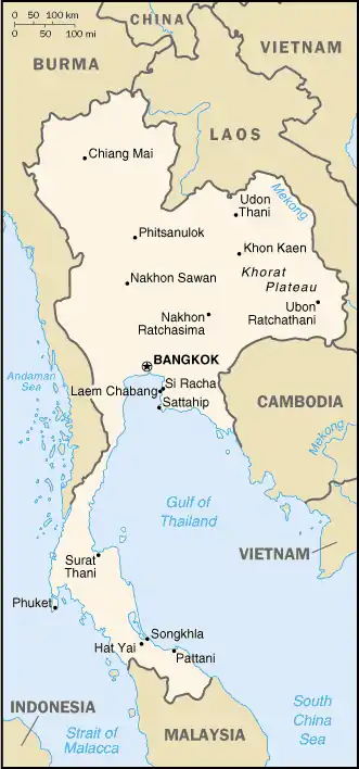 | Background: | A unified Thai kingdom was established in the mid-14th century. Known as Siam until 1939, Thailand is the only Southeast Asian country never to have been taken over by a European power. A bloodless revolution in 1932 led to a constitutional monarchy. In alliance with Japan during World War II, Thailand became a US ally following the conflict. Thailand is currently facing armed violence in its three Muslim-majority southernmost provinces. |