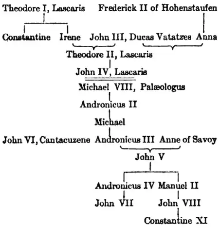 The fact that there had been no regular order of succession made the Byzantine throne the focus of numerous dissensions. It is undeniable, however, that this often redounded to the advantage of the State, inasmuch as military and palace revolutions frequently brought the most capable men to the head of affairs at a decisive moment. The sentiment in favour of dynastic succession however, had been gaining ground under the so-called Macedonian dynasty. The views of Constantine Porphyrogenitus furnish clear evidence of this, a proof even stronger is the touching devotion exhibited by the people towards Zoe and Theodora, the last representatives of that dynasty. Still the last period of Byzantine history thrice witnessed the accession of men outside the regular line of succession. John III, Vatatzes (1222-54), set aside his brother-in-law, Constantine, thus becoming the immediate successor of Theodore Lascaris. A military revolution placed Michael VIII, Palaeologus (1259-82), at the head of the State, in place of the child John IV, Lascaris (1258-59). John VI, Cantacuzene (1341-55), contrived to obtain possession of the sovereign power under similar circumstances. It may be said of John Vatatzes and Michael Palaeologus that events alone justified the interruption of the order of succession. But the elevation of John Cantacuzene must be counted, like the family dissensions of the Palaeologi, as among the most unfortunate occurrences of the empire. It is a sorry spectacle to see Andronicus II (1282-1328) dethroned by his grandson Andronicus III (1328-41) and immured in a monastery, and John V (1341-76 and 1379-91) superseded first by Cantacuzene then by his own son Andronicus IV (1376-79), and finally by his grandson John VII (1390). It is true that the neighbouring states, the Turkish Empire in particular, were rent with similar dissensions. The house of the Palaeologi, moreover, produced some capable rulers, such as Michael VIII, Manuel II (1391-1425), Constantine XI (1448-53). Still, the contests for the throne, at a period when the imperial glory was manifestly on the wane, could not but be ruinous to the best interests of the empire, and contribute mightily to its dissolution.