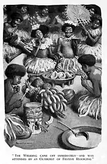 "When Nootooka was himself again, he told me sadly that at last a new crew, to take the place of the dear ones departed, must indeed be recruited for my service; and to this he added, more cheerfully, that Ooloola—her selective hesitancy having been automatically resolved by the eliminative contraction of her possibilities of choice—had consented to be his wife. His marriage to this worthy young woman, he said, appreciably would assuage his grief for his dear brothers who were gone; and he begged me, therefore, to solemnize the ceremony with the least possible delay. To his request I could not but accede with pleasure. The wedding came off immediately—and was attended by an outburst of festive rejoicing on the part of my simple-hearted parishioners that completely effaced their sorrow over the precedent series of tragedies that had made it possible."