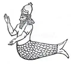 the fable related by Berosus, he came on earth each morning, and at evening plunged into the sea; this is a mythical description of the rising and setting of the sun. His semi-piscine form was am expression of the idea that half his time was spent above ground, and half below the waves.