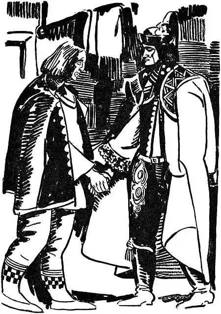 At length the handsome young lord said: “What, don’t you know your own son, Kubik, whom you used to beat for stealing when he showed you his betrothal gifts?”