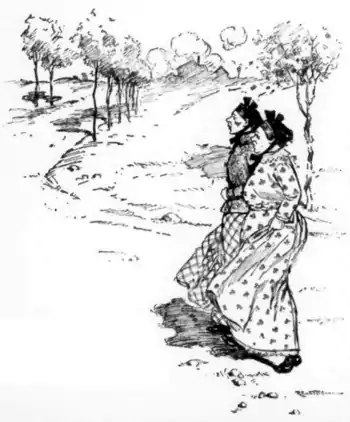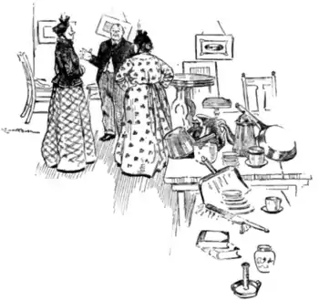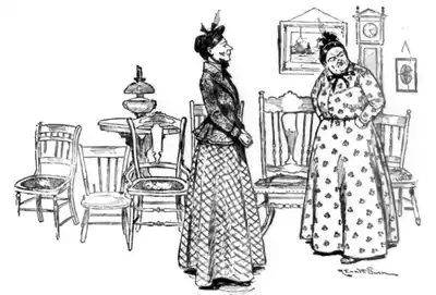 “Na, na. I tell't ve afore there wud be nae raffles, so ye needna be feart, Mistress M'Crae. Yer man cudna ha'e ony objections at ye gaun to the jumble sale. Ye see, a jumble sale is a vera different thing to a bazaur. Near a' the things at a bazaur is new: but a' the things at a jumble sale is auld. 'Deed, ay! Some o' them's gey auld! But then ithers is no' that auld. Gentry folk is no' needin' to weer holes in their claes, an' I've seen rale nice-like things gaun dirt chape. I mind the last sale I wis at—na, I'm wrang; it wis the yin afore. Weel, there wis a young leddy's hat—a beautiful hat—an' it wis nae stranger to me, fur the young leddy—she's Miss Smith, Doctor Smith's dochter—sits in oor kirk no' faur whaur we sit. Aw, it wis a beautiful hat, a' trimmed wi' roses, rid yins an' yella yins an' bew—na! there wisna ony bew yins. An' whit d'ye think it wis priced at the jumble sale? Whit d'ye think, Mistress M'Crae?”