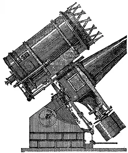 Vienna telescope (Grubb) 27 inches aperture focal length 15·5 apertures Washington"(Clark) 26 " " 15·0 " Pulkowa"(Clark) 30 " " 18·0 " - ↑ These inconvenient conditions are imposed by the dimensions of the existing dome and may lead to accidents in practice.