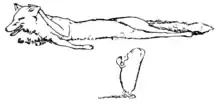 On went Johnny-cake, and by-and-by he came to a wolf. The wolf said: "Where ye going. Johnny-cake?"