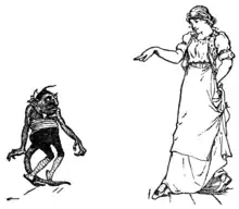 "Take time, woman," that says; "next guess, and you're mine." And that stretched out that's black hands at her.