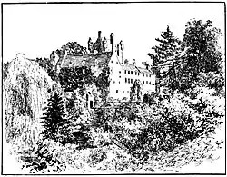 It is surprising that he should have thought that there could ever have been a moat on a rock high above the river. Johnson nevertheless also mentions it. What they mistook for a moat is the
