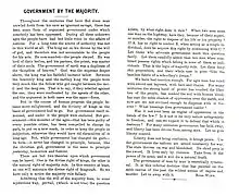 There are but two theories upon which government can be based. One is the divine right of kings, the other is the natural right of majority rule. In this country at least, no one will maintain the divine right of kingcraft. So we have only to notice the majority rule fallacy.
