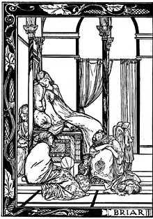 After many many years there came a king's son into that land: and an old man told him the story of the thicket of thorns; and how a beautiful palace stood behind it, and how a wonderful princess, called Briar-Rose, lay in it asleep, with all her court. He told, too, how he had heard from his grandfather that many many princes had come, and had tried to break through the thicket, but that they had all stuck fast in it, and died. Then the young prince said, "All this shall not frighten me, I will go and see this Briar-Rose." The old man tried to hinder him, but he was bent upon going.