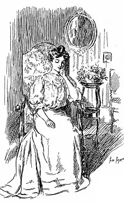 The Marchesa sat in a high armchair, upholstered in tarnished fading gold. The sun from the window shone on her hair; her face was half in shadow. She rested her head on her left; hand the right lay on her knee. It was stripped of any ring—unadorned white. Her cheeks were pale—the olive reigned unchallenged; her lips were set tight, her eyes downcast. She made no movement when Lord Lynborough entered.