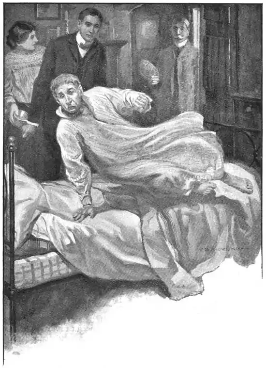 I felt bewildered as a rush of new ideas and suspicions crowded upon me, and stopped short. As for Artlett, he was clearly in a state of great excitement. His face had turned pallid; even the ruby of his inflamed eyelid had blanched, while he trembled so violently that the bedstead rattled.