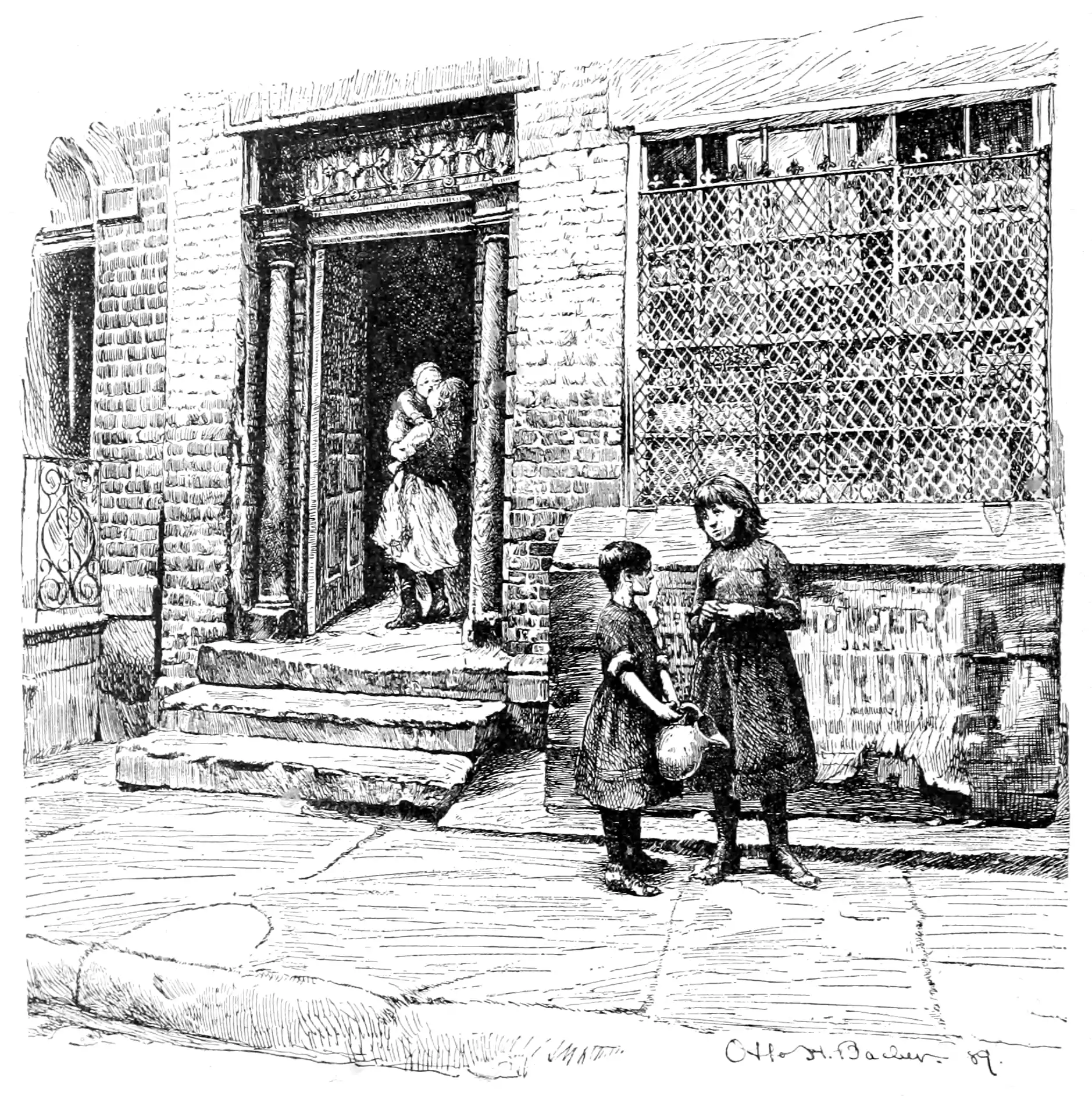 Leaving the Elevated Railroad where it dives under the Brooklyn Bridge at Franklin Square, scarce a dozen steps will take us where we wish to go. With its rush and roar echoing yet in our ears, we have turned the corner from prosperity to poverty We stand upon the domain of the tenement. In the shadow of the great stone abutments the old Knickerbocker houses linger like ghosts of a departed day. Down the winding slope of Cherry Street--proud and fashionable Cherry Hill that was--their broad steps, sloping roofs, and dormer windows are easily made out; all the more easily for the contrast with the ugly barracks that elbow them right and left. These never had other design than to shelter at as little outlay as possible, the greatest crowds out of which rent could be wrung. They were the bad after-thought of a heedless day. The years have brought to the old houses unhonored age, a querulous second childhood that is out of tune with the time, their tenants, the neighbors, and cries out against them and against you in fretful protest in every step on their rotten floors or squeaky stairs. Good cause have they for their fretting. This one, with its shabby front and poorly patched roof, what glowing firesides, what happy children may it once have owned? Heavy feet, too often with unsteady step, for the pot-house is next door--where is it not next door in these slums?--have worn away the brown-stone steps since; the broken columns at the door have rotted away at the base. Of the handsome cornice barely a trace is left. Dirt and desolation reign in the wide hallway, and danger lurks on the stairs. Rough pine boards fence off the roomy fire-places--where coal is bought by the pail at the rate of twelve dollars a ton these have no place. The arched gateway leads no longer to a shady bower on the banks of the rushing stream, inviting to day-dreams with its gentle repose, but to a dark and nameless alley, shut in by high brick walls, cheerless as the lives of those they shelter. The wolf knocks loudly at the gate in the troubled dreams that come to this alley, echoes of the day's cares. A horde of dirty children play about the dripping hydrant, the only thing in the alley that thinks enough of its chance to make the most of it: it is the best it can do. These are the children of the tenements, the growing generation of the slums; this their home. From the great highway overhead, along which throbs the life-tide of two great cities, one might drop a pebble into half a dozen such alleys.