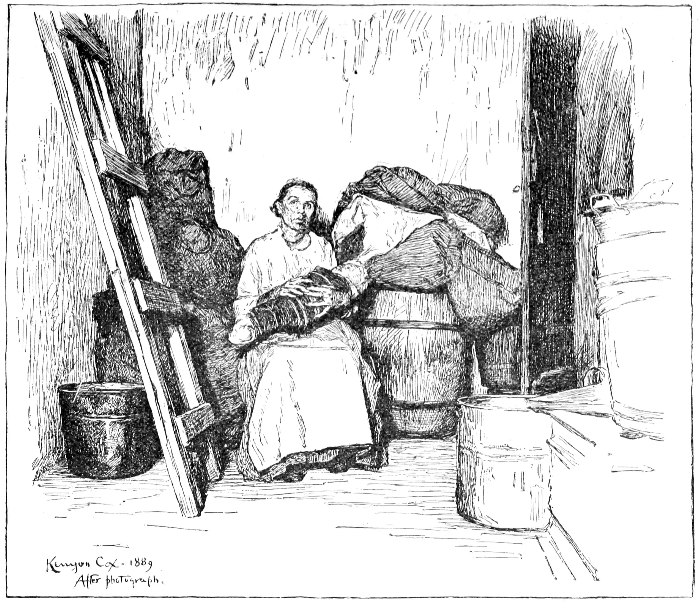 With all his conspicuous faults, the swarthy Italian immigrant has his redeeming traits. He is as honest as he is hot-headed. There are no Italian burglars in the Rogues' Gallery; the ex-brigand toils peacefully with pickaxe and shovel on American ground. His boy occasionally shows, as a pick-pocket, the results of his training with the toughs of the Sixth Ward slums. The only criminal business to which the father occasionally lends his hand, outside of murder, is a bunco game, of which his confiding countrymen, returning with their hoard to their native land, are the victims. The women are faithful wives and devoted mothers. Their vivid and picturesque costumes lend a tinge of color to the otherwise dull monotony of the slums they inhabit. The Italian is gay, lighthearted and, if his fur is not stroked the wrong way, inoffensive as a child. His worst offense is that he keeps the stale-beer dives. Where his headquarters is, in the Mulberry Street Bend, these vile dens flourish and gather about them all the wrecks, the utterly wretched, the hopelessly lost, on the lowest slope of depraved humanity. And out of their misery he makes a profit.