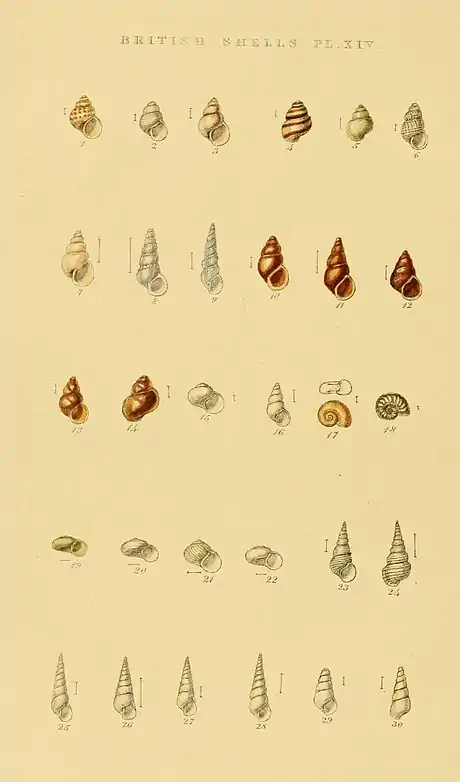 28, 29. Z. purus, Alder, (Helix.)—H. and Z. polita, and Helicella nitidosa, electrina, etc.—Most common North Engl. Whorls less close and more oblique than 21.