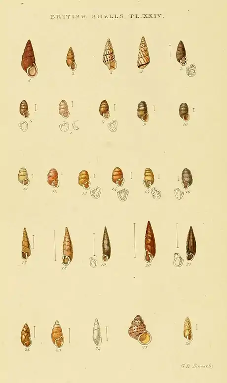 23, 24. Z. allarius, Miller, (Helix.)—H. and Z. glabra, alliacea, nitens, tenera, lurida, etc.—Distr. gen., C. Smaller and more convex than 17, 18.