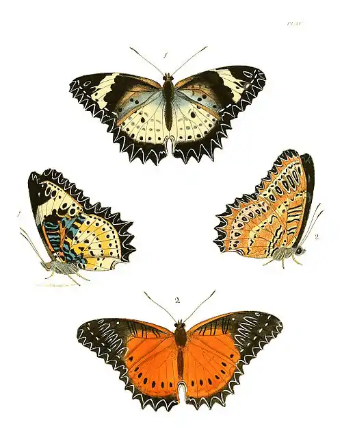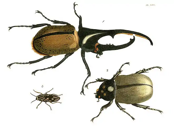 - ↑ The primary division of the class Insecta, now adopted, is into orders, Lepidoptera (called farinaceous by Drury), Coleoptera (called crustaceous by Drury), &c.