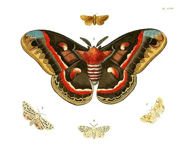 - ↑ This is evident from Gmelin's occasionally copying some of Fabricius' erroneous references, e.g. Bombyx ornatrix, Gmel. p. 2444. with a reference to Drury, v. I. t. 74. as in Fabr. Syst. Ent. p. 586. instead of tab. 24.