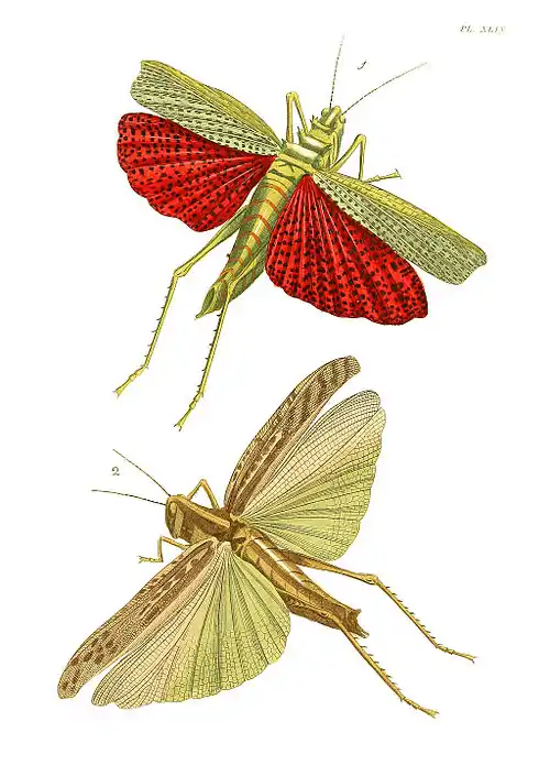 Genus. Locusta. Gryllus; Sect. Locusta, Linn. Gryllus, Fabr. Acrydium, Latr. (Subgenus: Locusta. Œdipoda, Serville.)