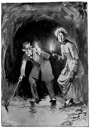 At one side of the drift and leaning against the wall, stood Mrs. Pennypoker, with one foot drawn up under her, much in the attitude of a meditative hen. A few feet away from her, the doctor was bending forward, with his lamp extended in one hand, while with his other he held his cane, which he was poking about in the soft, sticky mud.
