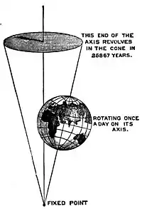 It will now be easily understood how it comes to pass that the position of the North Pole upon the earth has not appreciably changed in the course of thousands of years. The axis around which the earth rotates has retained a permanent position relative to the earth itself; but with regard to its direction in space it has continuously changed, it is at this moment changing, and will continue to change.