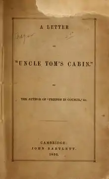 A letter on "Uncle Tom's cabin"