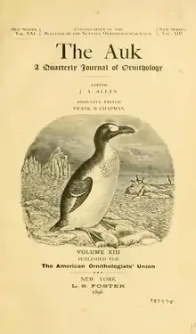 No. 1 page In Memoriam: George Newbold Lawrence. By D. G. Elliot, F. R. S. E. (Frontispiece.) 1 The Standing of Ardetta neoxena. By Frank M. Chapman. (Plate I.) 11 An Important Factor in the Study of Western Bird-Life. By Carl. F. Baker 20 The Pine Grosbeak in Captivity. By O. W. Knight. 21 Descriptions of an Apparently New Species and Subspecies of Ptarmigan from the Aleutian Islands. By D. G. Elliot, F. R. S. E. (Plate III.) 24 Songs of the Western Meadowlark. By L. Belding. 29 A New Subspecies of the Genus Dryobates. By A. W. Anthony 31 Description of a New Jay from Mexico. By Gerrit S. Miller, Jr. 34 Nesting Habits of Phainopepla nitens in California. By Florence A. Merriam 38 Descriptions of a New Warbler and a New Song Sparrow. By William Brewster 44 The Terns of Muskeget Island, Massachusetts. Part II. By George H. Mackay 47 Thirteenth Congress of the American Ornithologists' Union. By John H. Sage 55 Recent Literature.—Elliot's Monograph of the Pittidae, 60; The Fossil Birds of Patagonia, 61; Elliot's Limicolæ, 64; Some Canadian Birds, 67; Kirkwood on Maryland Birds, 67; The Structure and Life of Birds, 68; The A. O. U, Check-List of North American Birds, Second Edition, 69; Hudson's British Birds, 70; Bendire on the Cowbirds, 71; Lucas on the Weapons and Wings of Birds, 72; Fisher's Hawks and Owls from the Standpoint of the Farmer, 73; Beddard's 'Text-book of Zoögeography,' 73; Townsend on the Birds of Cocos Island, 75; Publications Received, 76. General Notes.—Do Young Loons eat Fresh-water Clams? 77; 'Gull Dick' Again, 78; An Early Description of Phalacrocorax dilophus, {[djvu page link|78|36}}; Another Harlequin Duck Record for Long Island, 78; Olor buccinator in Western Minnesota. 78; White-faced Glossy Ibis Breeding in Minnesota, 79; Ardetta neoxena from Wisconsin, 79; The Ring Rail Again in Maine, 79; Baird's Sandpiper in Maine, 82; The 1895 Migration of Charadrius dominicus in Massachusetts, 80; Habits of the Valley Partridge, 81; Additional Records of the Passenger Pigeon (Ectopistes migratorius) in Wisconsin and Illinois, 81; The Golden Eagle in New Jersey, 81; The Golden Eagle in Maine, 82; A New Long Island, N Y., Record for the Red-bellied Woodpecker, 82; The Deltoid Muscle in the Swifts, 82; The Scissor-tailed Flycatcher in Virginia and Maryland, 83: The Raven in Illinois, 83; The Ipswich Sparrow—A Correction, 84; Second Occurrence of the Lark Sparrow in Virginia, 84; The Cape May Warbler (Dendroica tigrina) in the Maritime Portions of South Carolina, 84; The Carolina Wren in Connecticut, 84; The Red-breasted Nuthatch (Sitta canadensis) on Long Island, South Carolina, 84; The Dwarf Thrush in Colorado, 85; Food of Woodpeckers and Flycatchers, 85; Rare Visitors to the Connecticut River Valley in Massachusetts in 1895, 86; A Correction, 86; Notes on Long Island Birds, 87; Nantucket Island Notes, 88; Gatke's Birds of Heligoland, 89. Correspondence.—The Soaring of Birds and Currents of Air, 92. Notes and News.—Obituary, Thomas Henry Huxley, 113; Henry Seebohm, 96; Henry T. Wharton, 97; Ornithological Lectures at Columbia College, 97; Kent Ornithological Club, 98; Protection of North American Birds, 98.