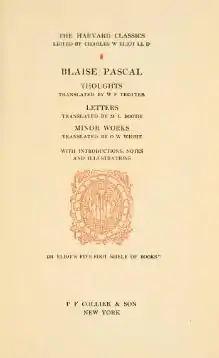 Passages erased by Pascal are enclosed in square brackets, thus [ ]. Words, added or corrected by the editor of the text, are similarly denoted. The translation is from the text of Brunschvicg.