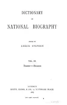 Title Dictionary of National Biography, 1885-1900, Vol 3 Baker - Beadon