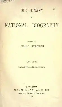 Title Dictionary of National Biography, 1885-1900, Vol 21 Garnett - Gloucester