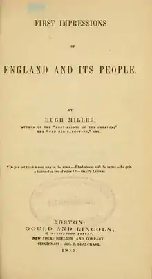 Quit York for Manchester.—A Character.—Quaker Lady.—Peculiar Feature in the Husbandry of the Cloth District.—Leeds.—Simplicity manifested in the Geologic Framework of English Scenery.—The Denuding Agencies almost invariably the sole Architects of the Landscape.—Manchester; characteristic Peculiarities; the Irwell; Collegiate Churv a; light and elegant Proportions of the Building; its grotesque Sculptures; these indicative of the Scepticism of the Age in which they were produced.—St. Bartholomew's Day.—Sermon on Saints' Day.—Timothy's Grandmother.—The Puseyite a High Churchman become earnest.—Passengers of a Sunday Evening Train.—Sabbath Amusements not very conducive to Happiness.—The Economic Value of the Sabbath ill understood by the Utilitarian.—Testimony of History on the point