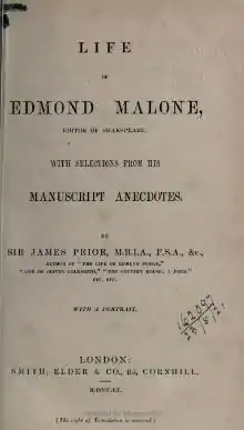 Correspondence with Flood—Second Appendix to Shakspeare—Prepares to become Editor—Horace Walpole—Bishop Percy—Goldsmith—Steevens—Elevation of his Brother to the Peerage—Boswell—John Kemble—Walpole and Rousseau—Lord Charlemont