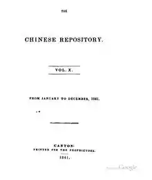 Title The Chinese Repository, Volume 10: (01/1841 to 12/1841)