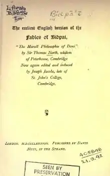 Translated from Italian into Elizabethan English by Thomas North (1570)
