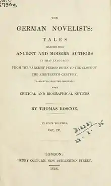 German Novels. PAGE Lewis Tieck.