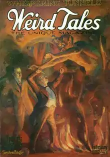 Whispering Tunnels - Stephen Bagby - 5 Novelette of Verdun, the World War, and Devil-Worship Crossed Lines - Robert G. Bowie and Robinson H. Harsh - 25 Tale of Tangled Personalities A Broken Lamp-Chimney - Arthur J. Burks - 33 Strange Tales From Santo Domingo: No. 1 The Tomb-Dweller - Alice I. Fuller - 37 A Cataleptic Who Lived in a Mausoleum Into the Fourth - Adam Hull Shirk - 45 Adventures in the Fourth Dimension—Disappearance of Two Men Leopard’s Trail - W. Chiswell Collins - 49 In the Clutches of the Terrible Leopard's Society of Africa Hunger - Frank Owen - 62 Tormented by the Gnawing of the Rat, Mel Curran Commits Murder Foud Wooden Stakes - Victor Rowan - 65 A Tale of Vampires An Unclaimed Reward - Strickland Gillilan - 72 Two Boys Enjoy Four Wonderful Hours of Ghastly Fear The Brown Moccasin - David Baxter - 77 Tragicomedy of Animal Life The Magic of Dai Nippon - J.U. Giesy - 83 Dream Hypnotism—and the Kimono of Death Wanderlust by Proxy - Will Smith - 90 Savn and the South Seas—Bizarre Tale of Radio For Sale—A Country Seat - Helen Liello - 103 Cats, a Suicide, and a Real Estate Agent Sea Change - Henry S. Whitehead - 111 A Cretin, Shipwrecked on a Distant Island The Wolf of the Campagna - Harry Bailey - 123 Romantic Tale of Cesare Borgia The Master of Hell - Gordon Philip England - 130 Dream Fantasy—a Glimpse of the Pit and the Devil Wings of Power (Second Part) - Lady Anne Bonny - 133 Three-part Pseudo-Scientific Novel The Scarf of the Beloved - Greye La Spina - 146 The Looting of a Grave—and What Befell Thereafter The Statement of Randolph Carter - H. P. Lovecraft - 149 Down Into the Tomb Went His Friend—He Never Returned Death - James C. Bardin - 153 An Easy Fayrian - Louise Garwood - 155 She Killed Her Husband—and Then Found She Wanted Him The Jungle Presence - Dick Heine - 160 It Was No Dream, This Hideous Nightmare The Eyrie - 163 A Chat With the Readers That White Superiority - George Allard Bowers - 172 Saking Found That Americans Excelled the Filipinos in One Thing The Figure of Anubis - Edward Podolsky - 186 Weird Adventure Among the Grand Ruins of Thebes |