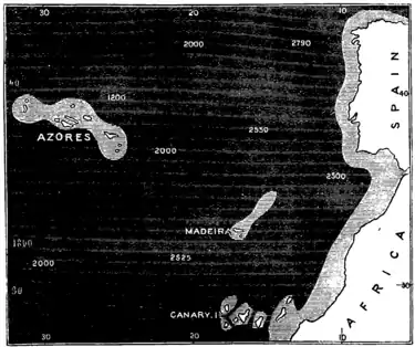 We will commence our investigation into the phenomena presented by oceanic islands, with two groups of the North Atlantic, in which the facts are of a comparatively simple nature and such as to afford us a valuable clue to a solution of the more difficult problems we shall have to deal with further on. The Azores and Bermuda offer great contrasts in physical features, but striking similarities in geographical position. The one is volcanic, the other coralline; but both are surrounded by a wide expanse of ocean of enormous depth, the one being about as far from Europe as the other is from America. Both are situated in the temperate zone, and they differ less than six degrees in latitude, yet the vegetation of the one is wholly temperate, while that of the other is almost tropical. The productions of the one are related to Europe, as those of the other are to America, but they present instructive differences; and both afford evidence of the highest value as to the means of dispersal of various groups of organisms across a wide expanse of ocean.