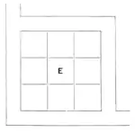 In the private apartments of the Emperor and Empress moquette carpets, plush furniture, and easy-chairs confess foreign influence and etiquette. The old rules of the simplicity of a Shinto shrine in the sovereign’s dwelling are observed in leaving all the wood-work unpainted, while wax-candles and open grates replace the electric bulbs and gilded radiators of the official parts of the palace. Some of the private rooms display exquisite panelled and coffered ceilings of pure white pine, or the beautiful gray bog-wood. Each suite has one room in pure Japanese style, and a tiny box for celebrating the rites of cha no yu with a favored four. The Emperor's sleeping-room is the same unlighted, unventilated dark closet which his ancestors used. This sleeping-room is E in the accompanying diagram, surrounded by rooms occupied at night by his attendants and guards.