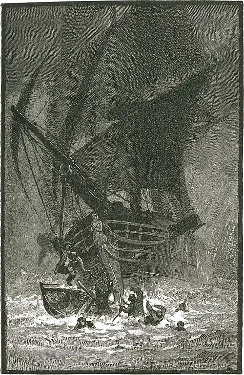 May-be about ten at night, I was serving Mr. Riach and the captain at their supper, when the ship struck something with a great sound, and we heard voices singing out. My two masters leaped to their feet.