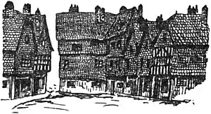 I should be reluctant to indulge in too venturesome hypotheses, but it seems to me that the black and white stripes on the sleeves of English policemen have their origin precisely in that criss-cross style of old English houses, as shown in the drawing.