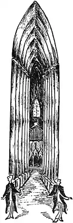 Thus English ecclesiastical architecture is on the whole less picturesque and less plastic than that of the Continent. When the ancient Britons had once contrived to build enormous church naves with a wooden ceiling, they kept to it in Gothic as well, evidently prompted by a primitive conservatism; and so their churches are large halls with broad windows, without vaultage or groins, without any huge system of buttresses, arches, cornices and the whole of that plastic riot; and they have two rectangular towers by the gateway and one above the cross-ties, statues flung out by the Reformation and scanty sculptural adornment, the inner space spoilt by the choir and the general impression considerably upset by the presence of sacristans.