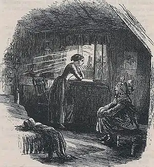 Little Dorrit received a call that same evening from Mr Plornish, who, having intimated that he wished to speak to her privately, in a series of coughs so very noticeable as to favour the idea that her father, as regarded her seamstress occupation, was an illustration of the axiom that there are no such stone-blind men as those who will not see, obtained an audience with her on the common staircase outside the door.