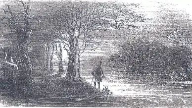 A tranquil summer sunset shone upon him as he approached the end of his walk, and passed through the meadows by the river side. He had that sense of peace, and of being lightened of a weight of care, which country quiet awakens in the breasts of dwellers in towns. Everything within his view was lovely and placid. The rich foliage of the trees, the luxuriant grass diversified with wild flowers, the little green islands in the river, the beds of rushes, the water-lilies floating on the surface of the stream, the distant voices in boats borne musically towards him on the ripple of the water and the evening air, were all expressive of rest. In the occasional leap of a fish, or dip of an oar, or twittering of a bird not yet at roost, or distant barking of a dog, or lowing of a cow—in all such sounds, there was the prevailing breath of rest, which seemed to encompass him in every scent that sweetened the fragrant air. The long lines of red and gold in the sky, and the glorious track of the descending sun, were all divinely calm. Upon the purple tree-tops far away, and on the green height near at hand up which the shades were slowly creeping, there was an equal hush. Between the real landscape and its shadow in the water, there was no division; both were so untroubled and clear, and, while so fraught with solemn mystery of life and death, so hopefully reassuring to the gazer’s soothed heart, because so tenderly and mercifully beautiful.