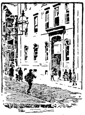 "There were two big mickies—Irish you know—bothering two little niggers—oh, excuse me! black boys—at the corner of our school; so I just pitched in and gave it to them right and left. But they were bigger than me, and maybe I'd have got whipped if it hadn't been for Ben Bruce. He just ran down the school steps like a streak of lightning, and you should have seen those bullies slink away. They muttered something about doing Ben up some other day; but I guess they'll never dare touch him."