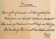 "Music." Autograph verse, signed. Easter 1916 (April 23)