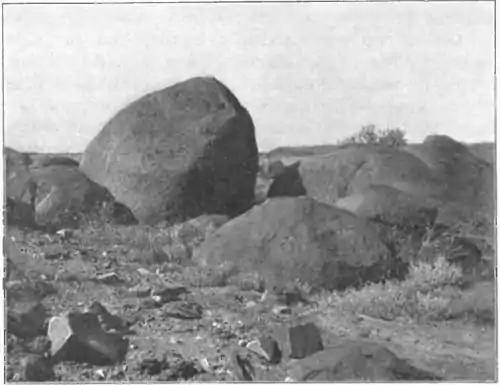 When the grave is filled in, a large stack of wood is placed on it, and this practice seems to be universal in the country of the Barcoo and Diamantina deltas, where I observed some striking instances of it. The most striking case was to the south of Sturt's Stony Desert, in the country of the Ngurawola tribe; and I was told that the group of several graves, each with a great pile of wood on it, contained men who had been killed in an attack by blacks of a neighbouring tribe.