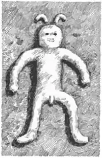 - ↑ One of the men attending this Jeraril had never yet been made free of some food animal, I forget which, but it was the eating of which, for some reason or other, he believed would be injurious to him. Being very strong and active and always on his guard, he had managed to escape whenever the old men had tried to smear his face with its fat.