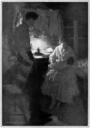 He lifted her chair, setting it back against the wall. There was an impulse in him which could have knelt to it as to a shrine. She had raised him up to her through that short hour, and he was on the pinnacle still, dizzy, exultant, greatly daring with half-born desire. He went quickly into the other room. A faint fragrance still hung upon the air. It was as though she had left a benediction behind her. Shading the candle, he put away the basin and towel which she had used, moving them with reverent fingers. Then he went over and looked down on the child. There had been hungry motherhood in her every touch of it. Each broken word to it had been a caress. North, standing still, considered the other days—days when red, coarse hands had fumbled over the baby; when she pottered, down-at-heel, about the room, his little wife of the shanty pub, with her vacant face of faded prettiness and her shrill voice and shriller laughter. He glanced around with a swift dread, as though he felt her there. And then, at sight of the chair beyond the open door, he knew that sordid atmosphere gone forever.