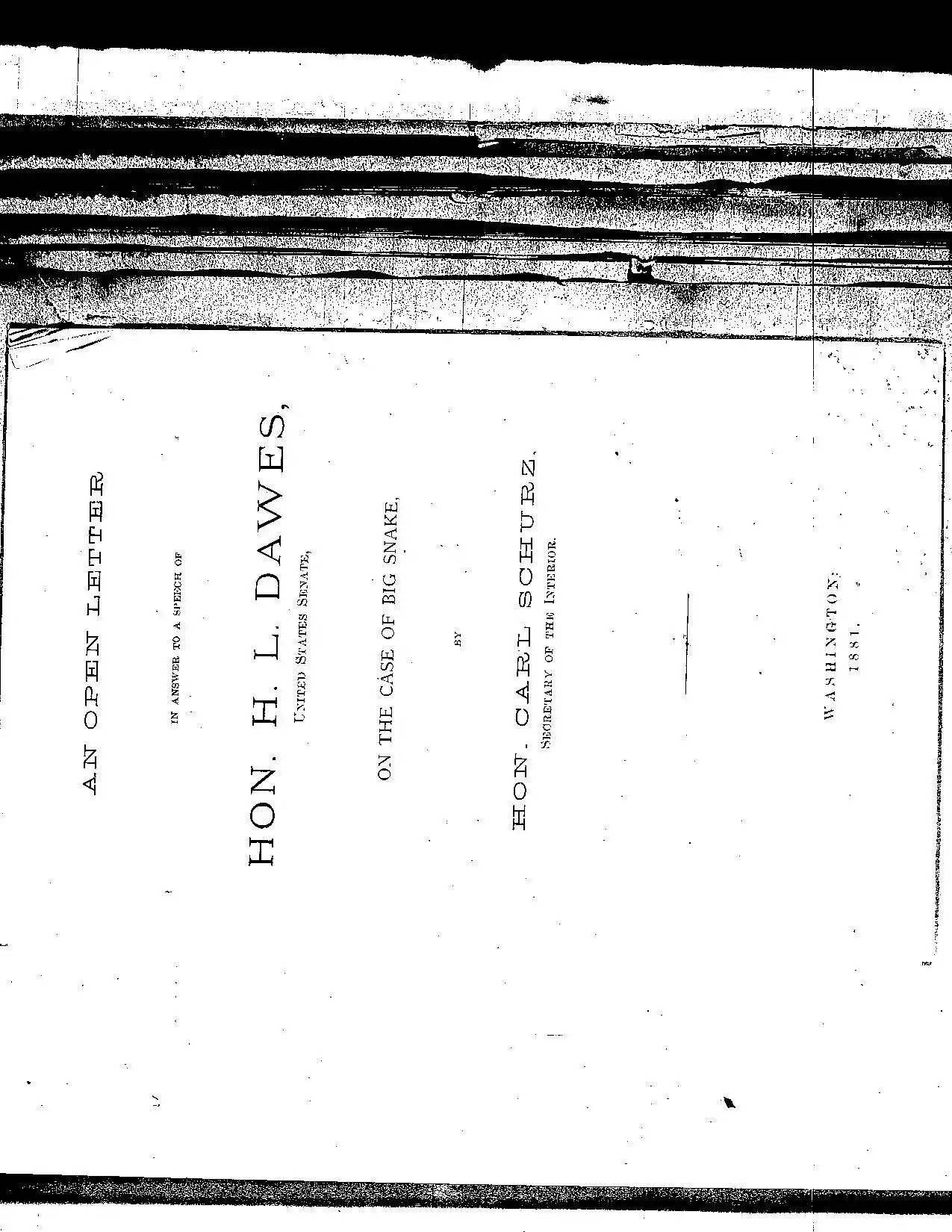 I have read your speech recently delivered in the Senate on the killing of the Ponca Chief “Big Snake,” in which you made certain reflections on the conduct of the Interior Department calling for my attention.