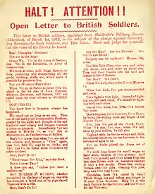 Don't You know that when you are out of the colours, and become a "civy" again, that you, like us, may be on Strike, and You, like Us, are liable to be murdered by other soldiers.