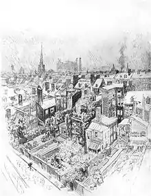 BACK-YARDS, ST. PETER'S SPIRE IN THE DISTANCE
