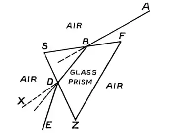 and comes out in a line quite turned aside from its original direction AB.